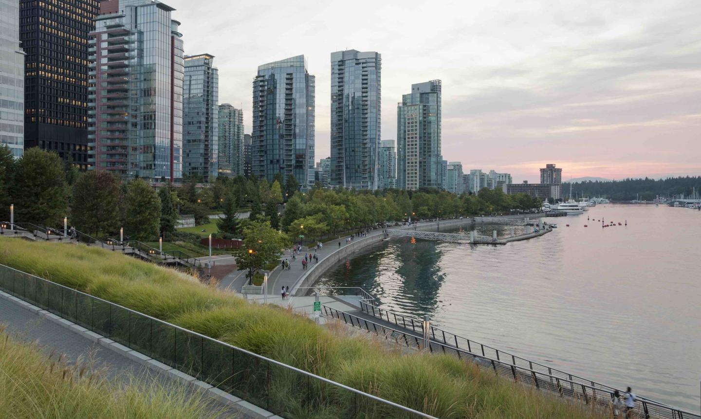 The Coal Harbour neighbourhood accommodates a breadth of local and international visitors, young and old, with services, meeting grounds, and public spaces including parks, a school site, marina, residential towers, commercial and retail space, and a community centre. Our team developed the overall masterplan for all of the Coal Harbour lands—including Burrard Landing (now the site of the Vancouver Convention Centre West), Harbour Green Seawall Walkway and Bikeway, the neighbourhood streets, and Coal Harbour Community Park—and the construction documents for individual parcels, two park areas, and the Vancouver Convention Centre. We provided the detailed design for Coal Harbour Community Park and Harbour Green Park II.