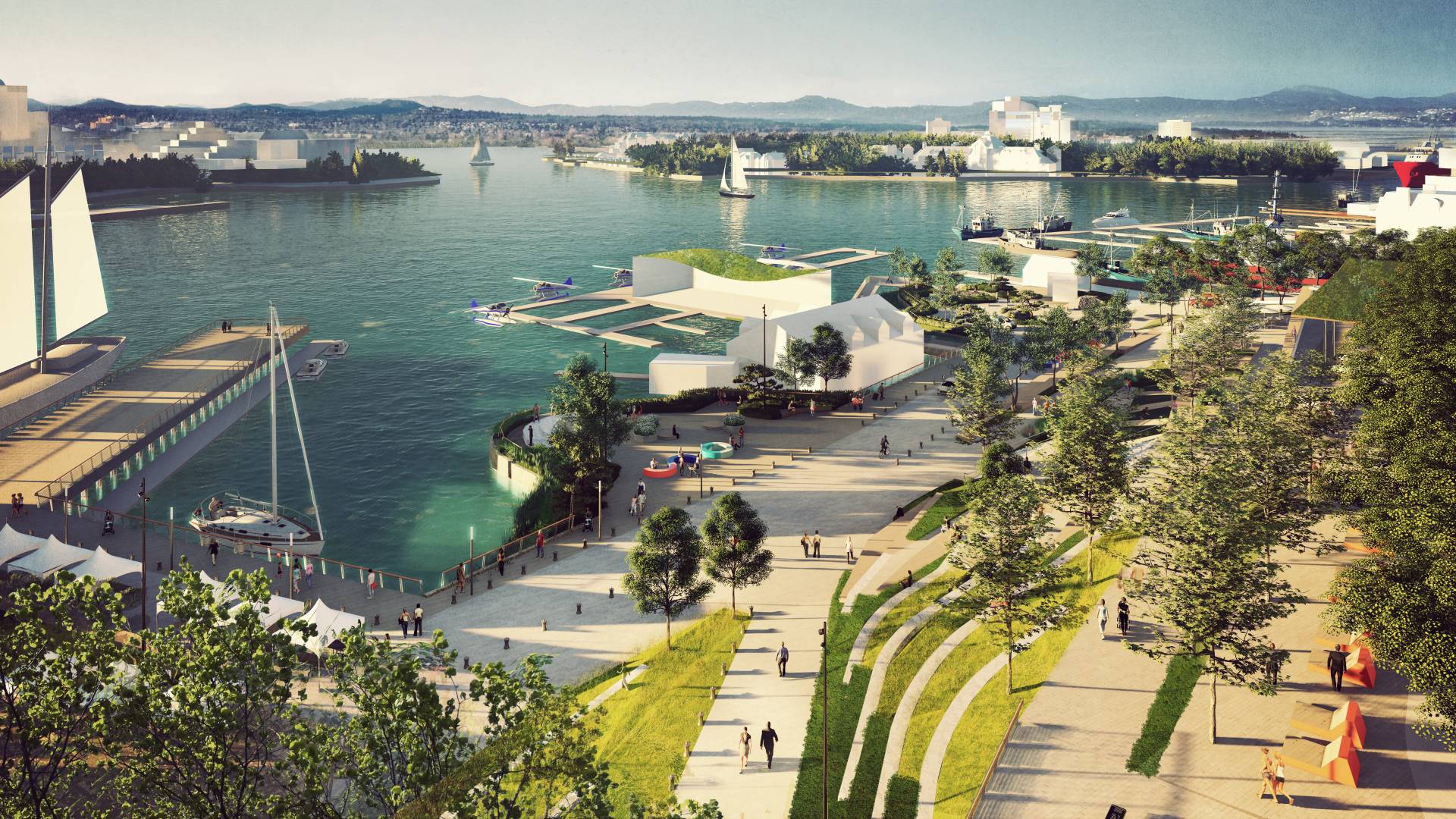 The Master Plan transforms what is currently a significant barrier to accessibility into a distinct destination for people-watching, playful exploration and spectator events while creating a universally accessible condition that seamlessly connects the waterfront with Victoria’s Downtown.